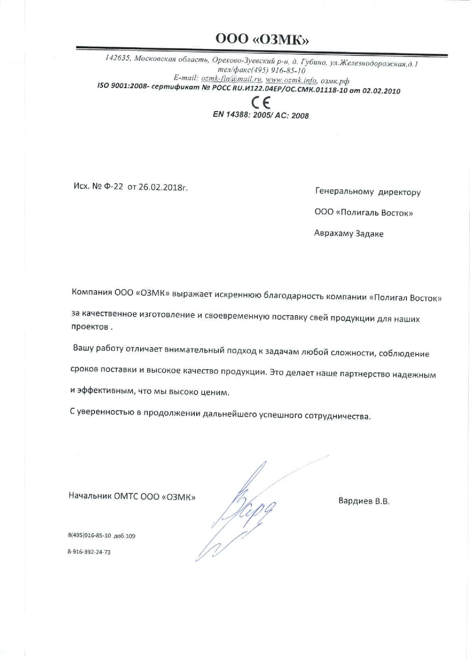 Благодарственные письма