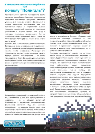 Применение панелей поликарбоната «Полигаль» в качестве стенового ограждения приводит к значительной экономии тепла и, следовательно, затрат на отопление