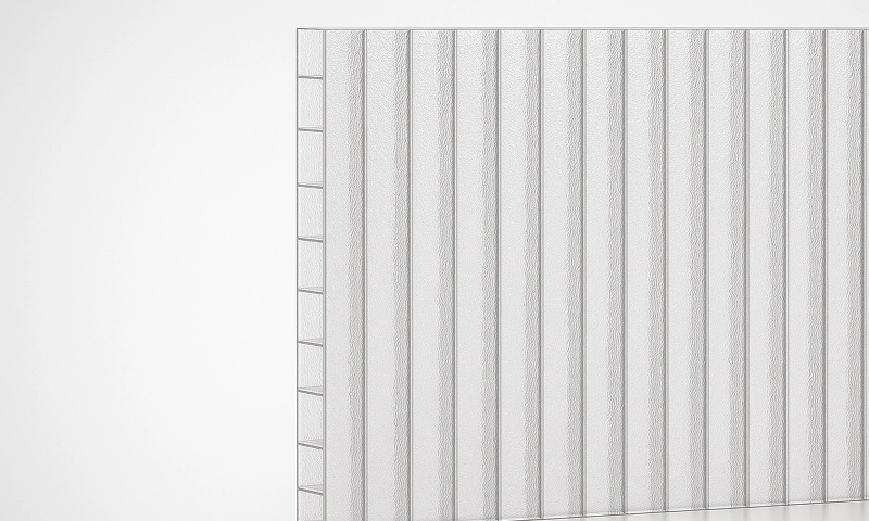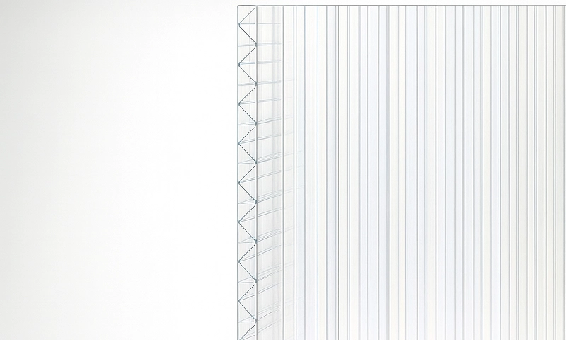 - Прозрачность: Материал обладает отличной прозрачностью и передает свет на 90-95%. Это позволяет использовать его для создания яркого и просторного помещения, а также для увеличения светового потока внутри здания.