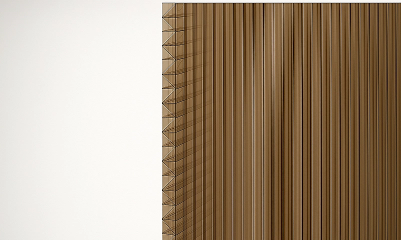- Изоляция: Сотовый поликарбонат полигаль обладает отличными теплоизоляционными свойствами. Он имеет низкий коэффициент теплопередачи, что помогает сохранять тепло в зимний период и охлаждаться в летний.